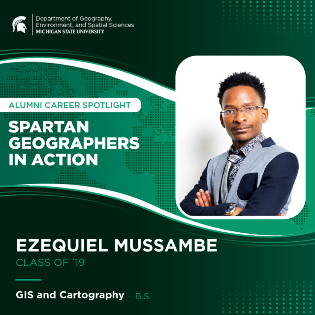 Highlighting a spotlight on a previous student mentored: Congratulations to Ezequiel Mussambe, who is currently a GIS developer and analyst for Hydrosimulatics!